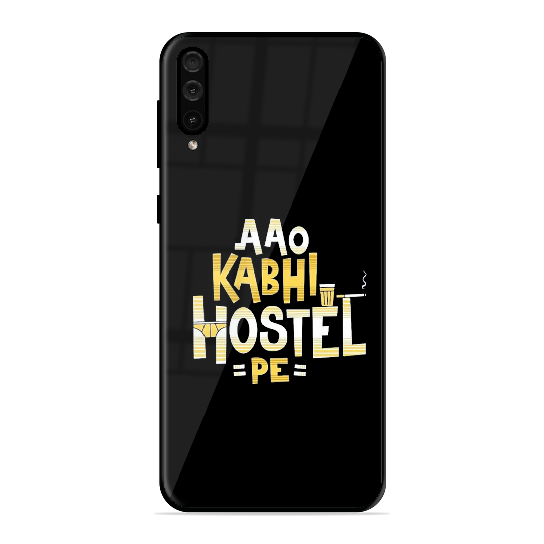 Tempered Glass Coated Metal Back Case for Samsung Galaxy A50 Hostel Life