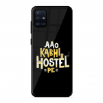 Tempered Glass Coated Metal Back Case for Samsung Galaxy A51 Hostel Life