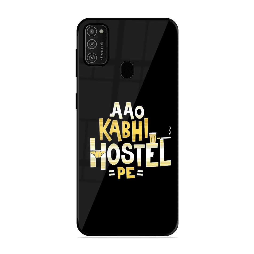Tempered Glass Coated Metal Back Case for Samsung Galaxy M21 2021 Hostel Life