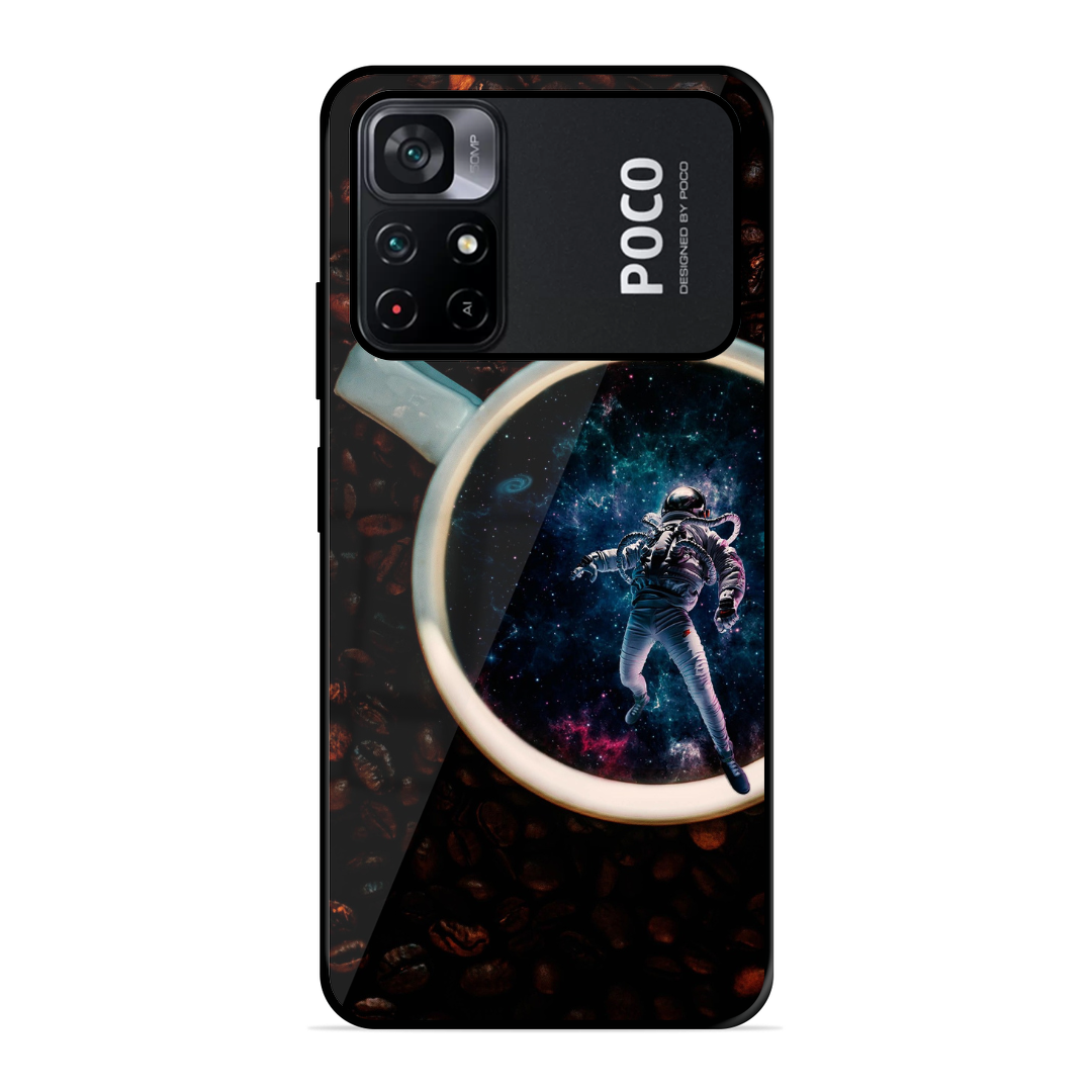 Tempered Glass Coated Metal Back Case for Poco M4 Pro 5G Intergalactic Travler