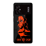 Tempered Glass Coated Metal Back Case for Poco M5 Jai Shree Ram