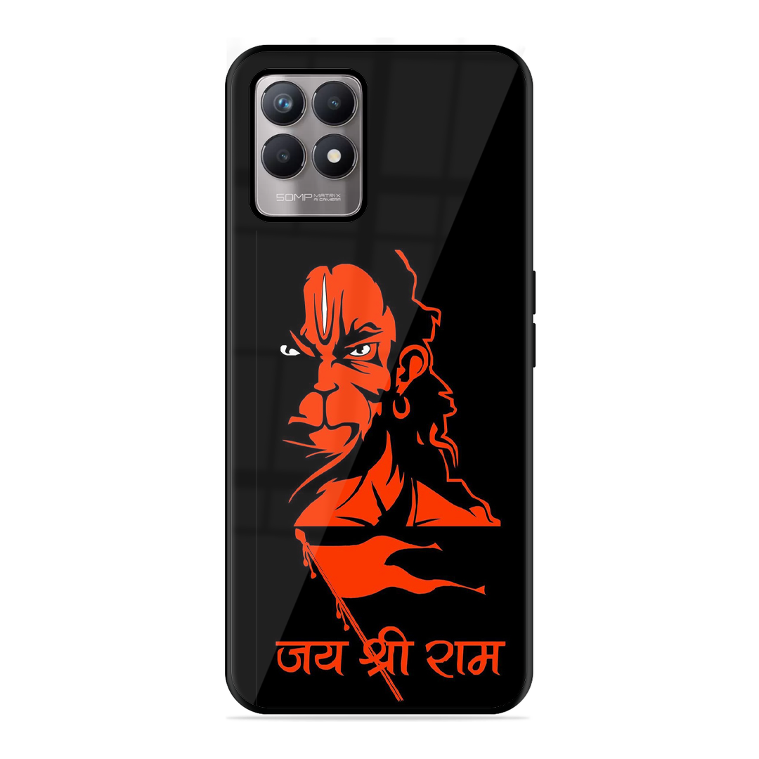 Tempered Glass Coated Metal Back Case for Realme 8I Jai Shree Ram