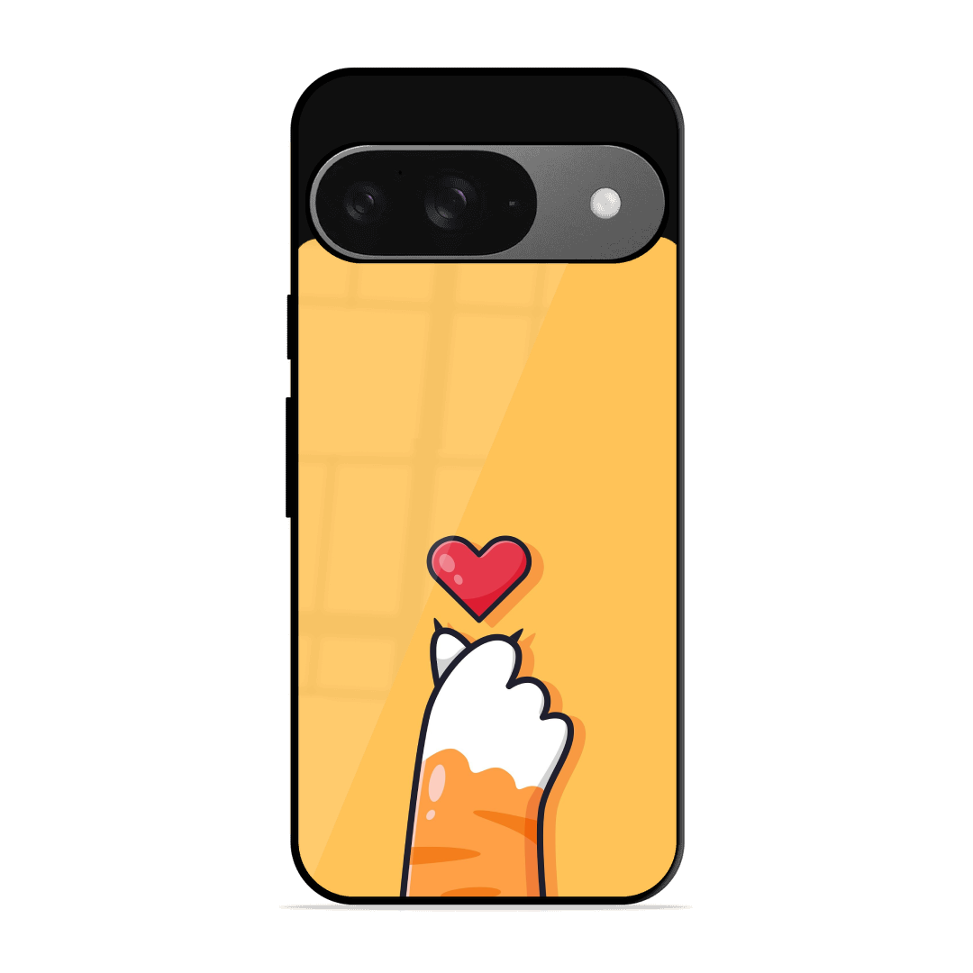 Tempered Glass Coated Metal Back Case for Google Pixel 9 Kitty Love