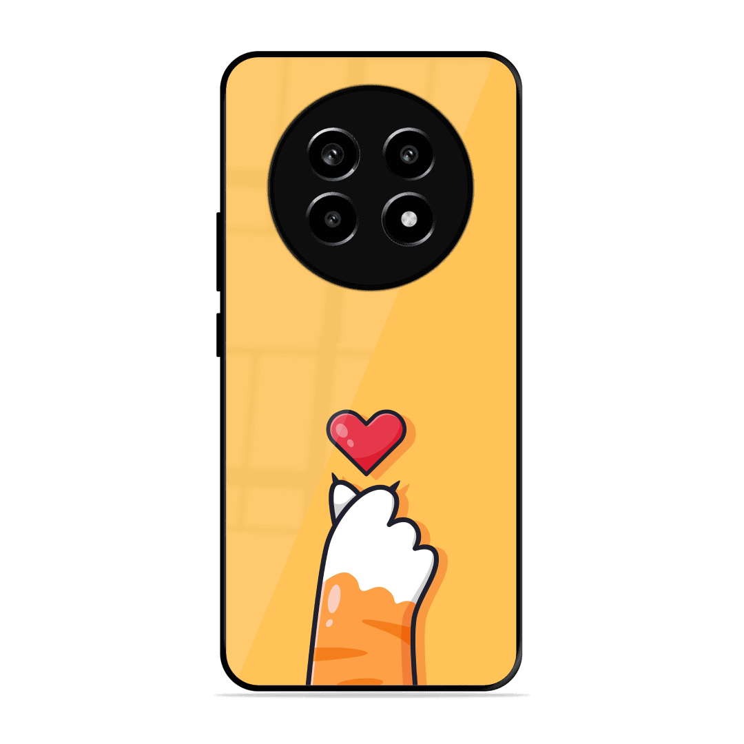 Tempered Glass Coated Metal Back Case for Realme 14 Pro Lite 5G Kitty Love