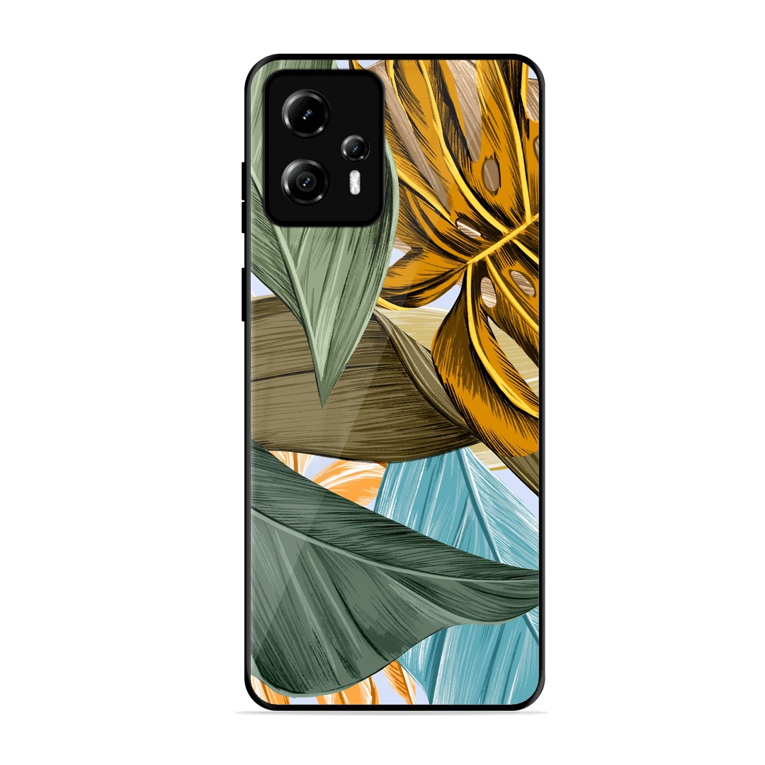 Tempered Glass Coated Metal Back Case for Motorola Moto G23 Leaves