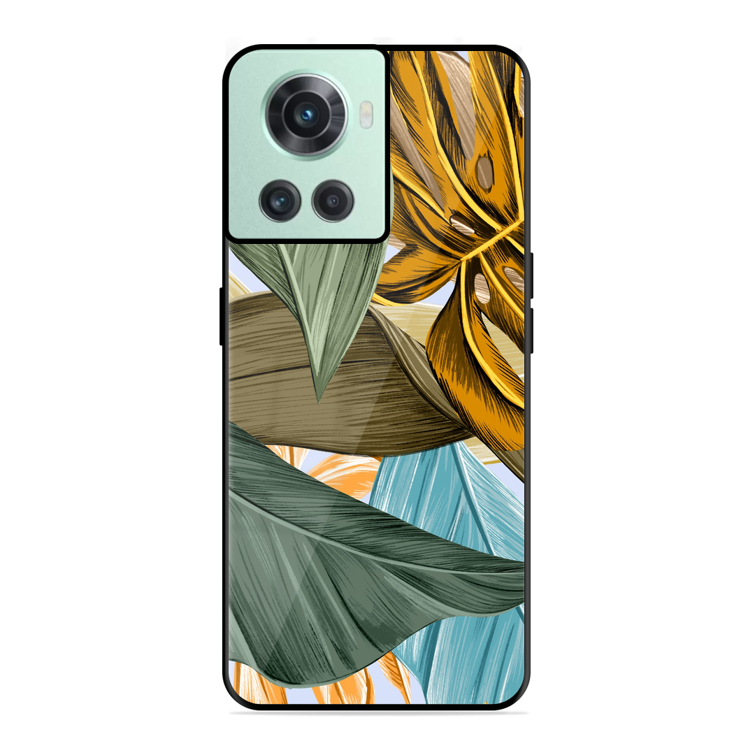 Tempered Glass Coated Metal Back Case for Oneplus 10R 5G Leaves