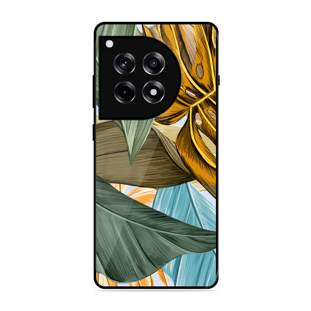 Tempered Glass Coated Metal Back Case for Oneplus 12R 5G Leaves