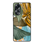 Tempered Glass Coated Metal Back Case for Oppo A58 Leaves