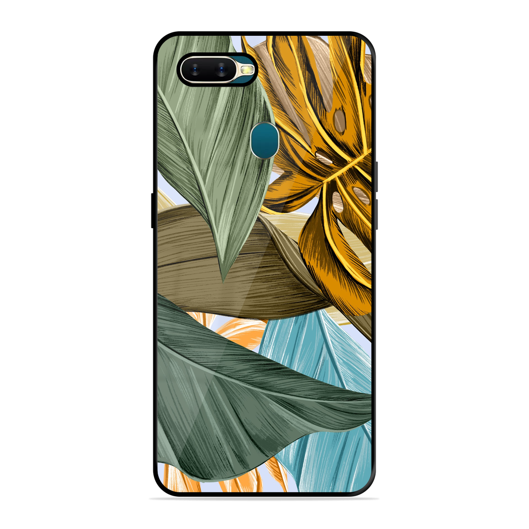 Tempered Glass Coated Metal Back Case for Oppo A5S Leaves