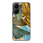 Tempered Glass Coated Metal Back Case for Poco C65 Leaves