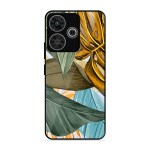 Tempered Glass Coated Metal Back Case for Poco M6 Plus 5G Leaves