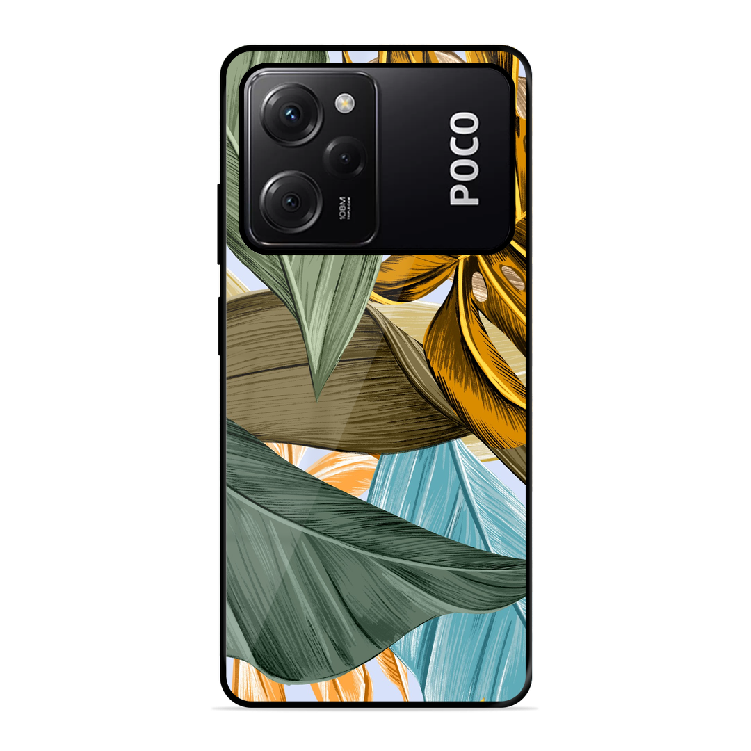 Tempered Glass Coated Metal Back Case for Poco X5 Pro 5G Leaves