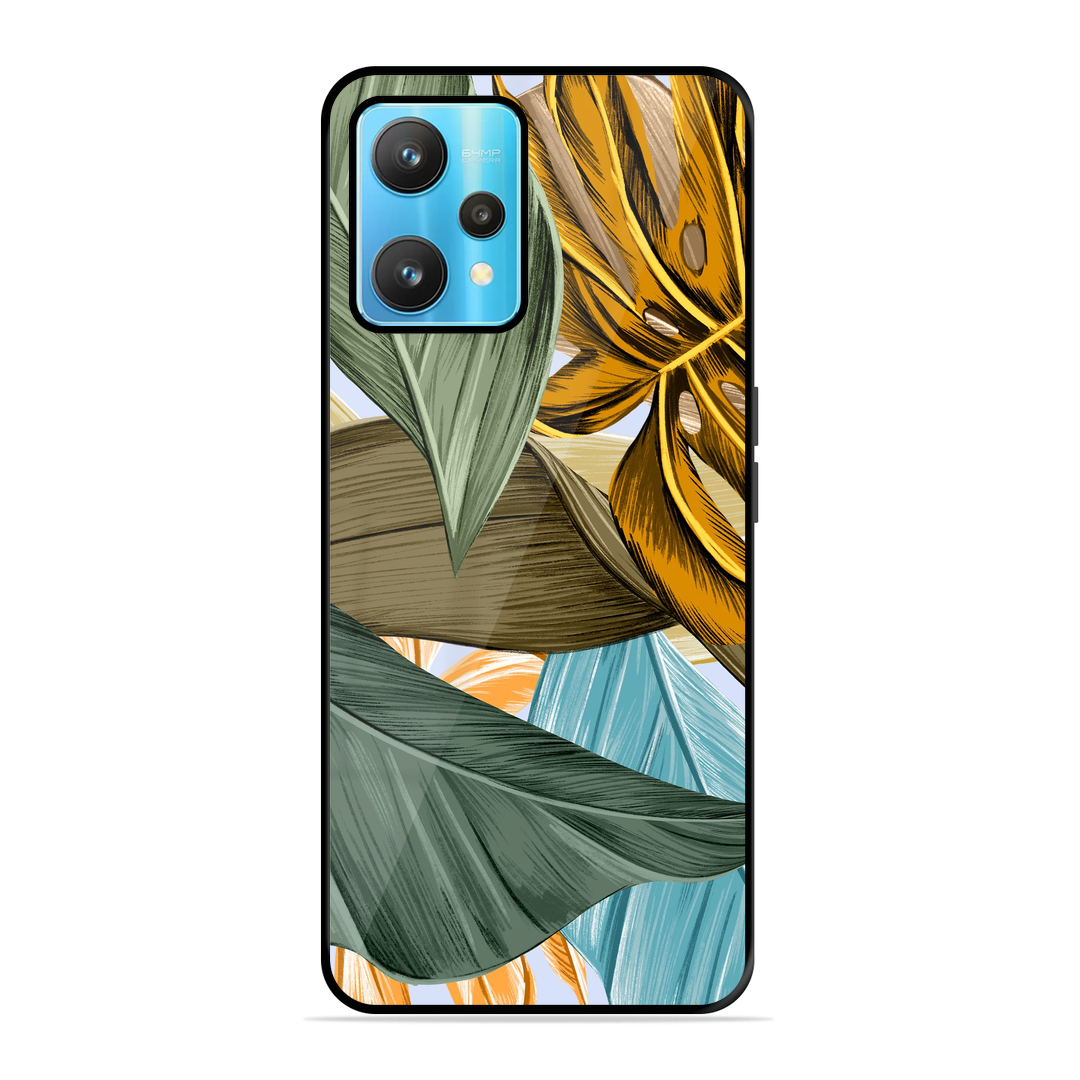 Tempered Glass Coated Metal Back Case for Realme 9 Pro 5G Leaves