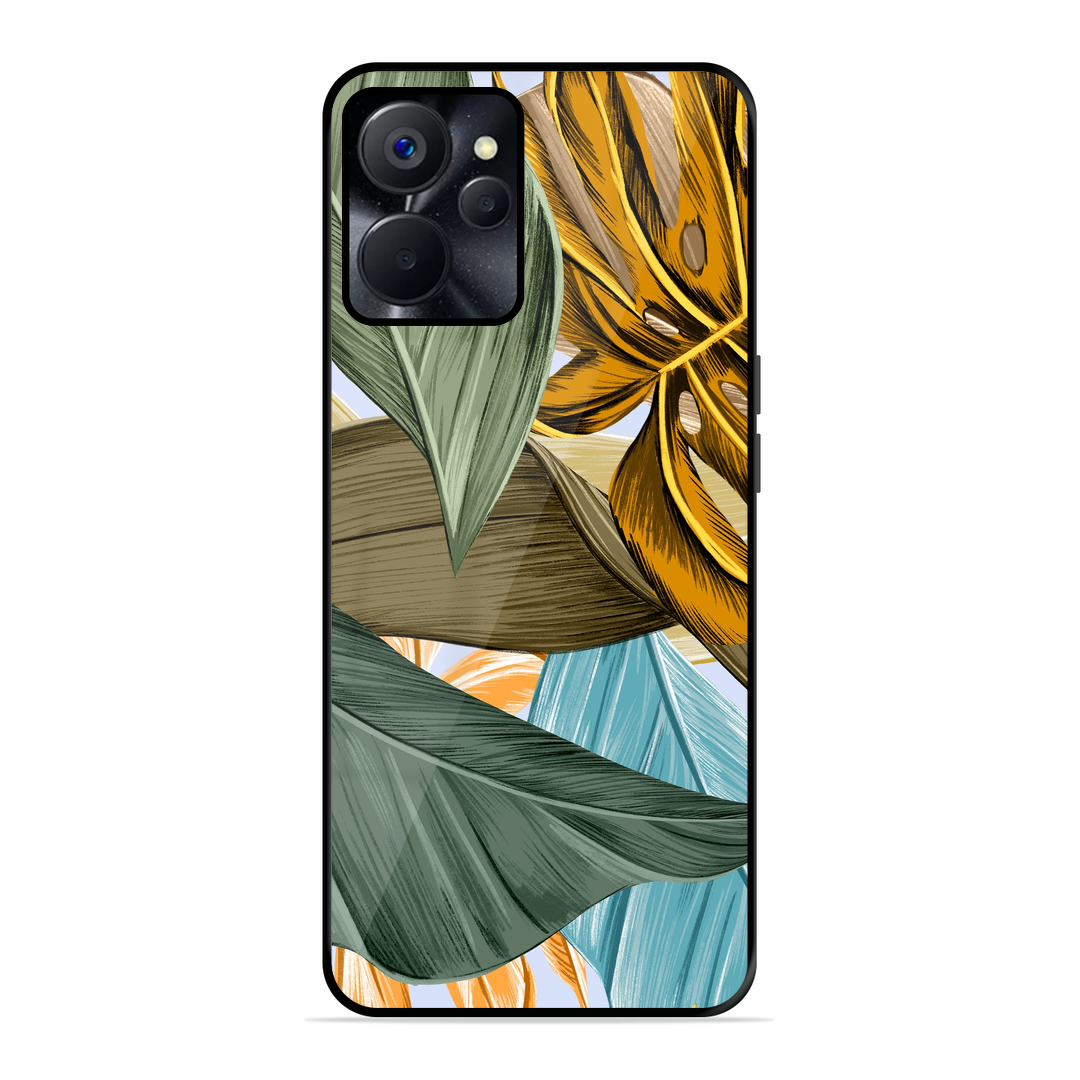 Tempered Glass Coated Metal Back Case for Realme 9I 5G Leaves