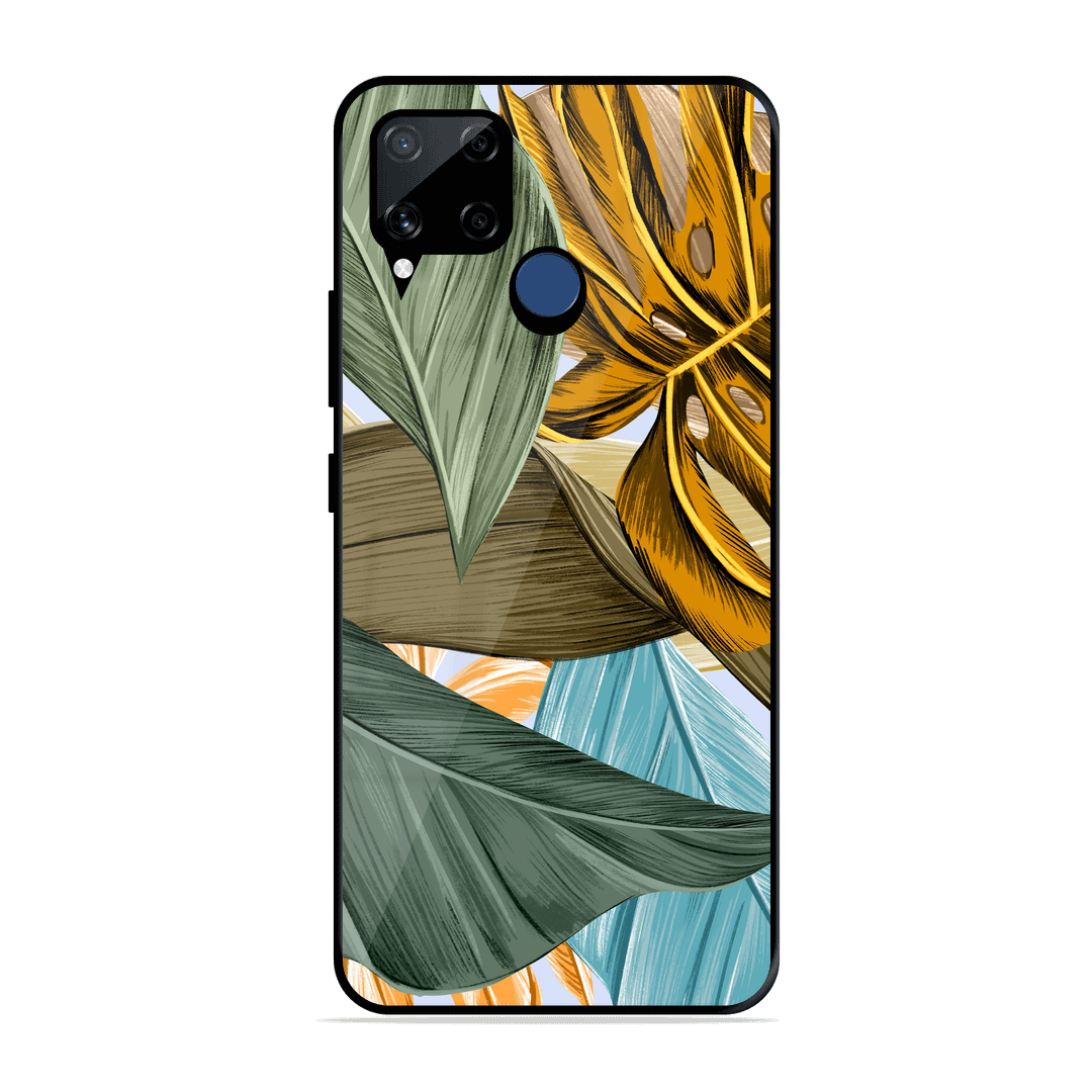 Tempered Glass Coated Metal Back Case for Realme C15 Leaves