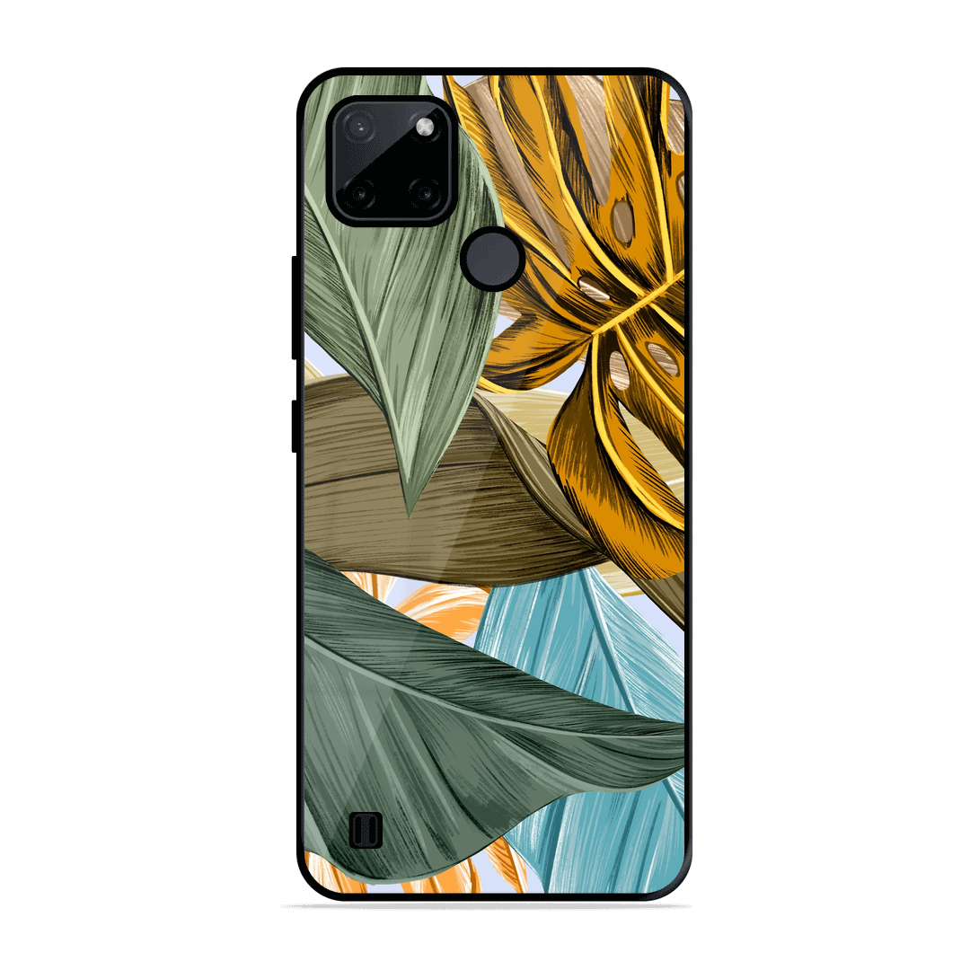 Tempered Glass Coated Metal Back Case for Realme C21Y Leaves