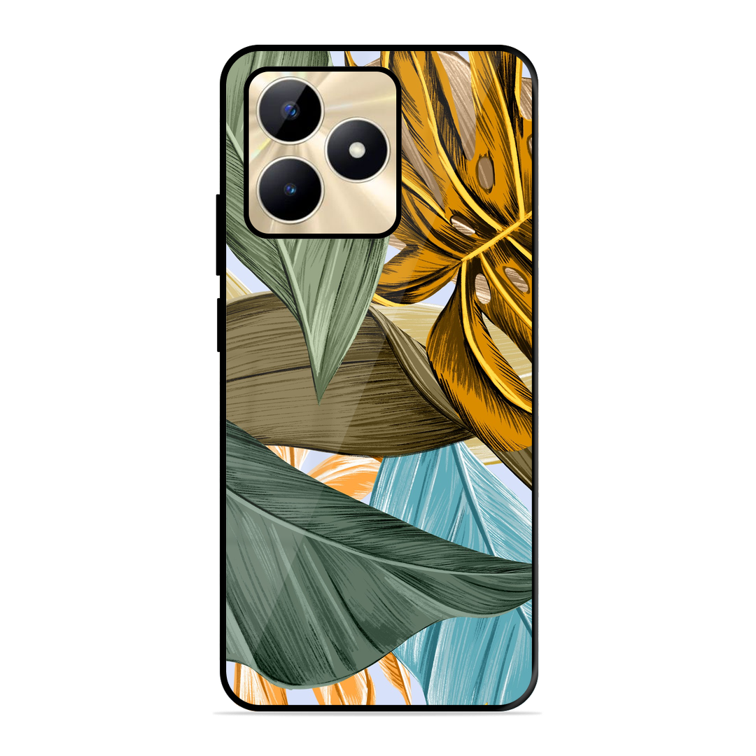 Tempered Glass Coated Metal Back Case for Realme C53 Leaves