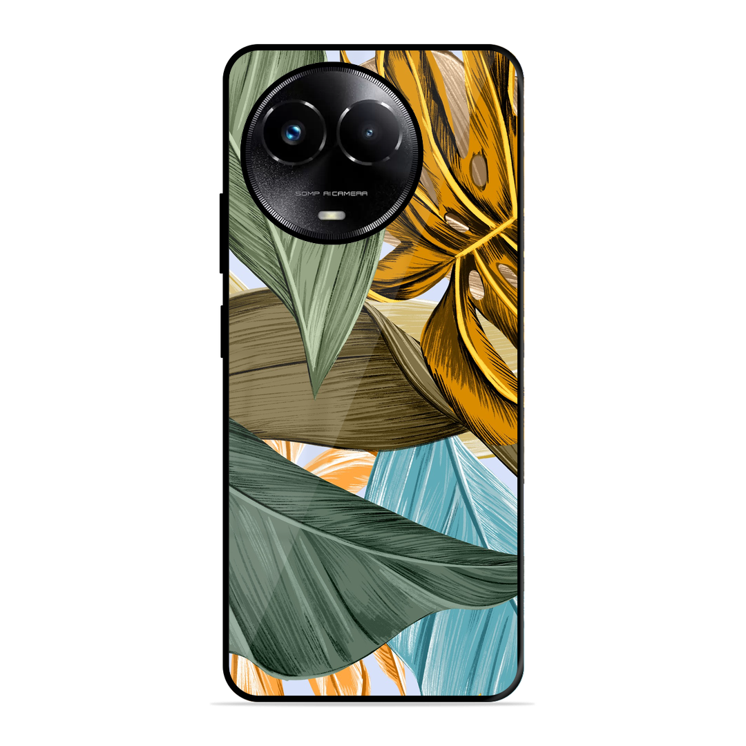 Tempered Glass Coated Metal Back Case for Realme C67 5G Leaves
