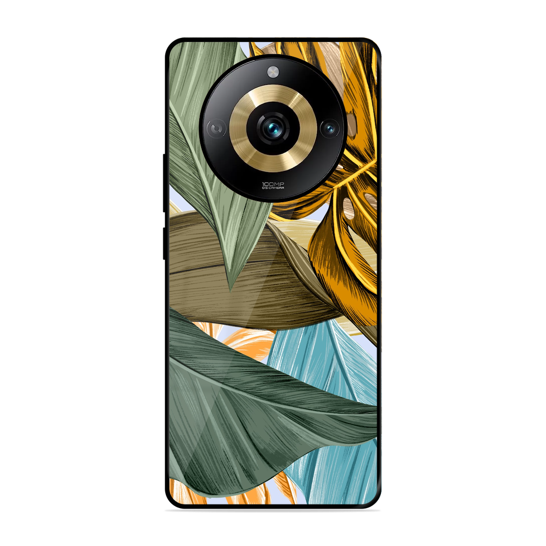 Tempered Glass Coated Metal Back Case for Realme Narzo 60 Pro 5G Leaves