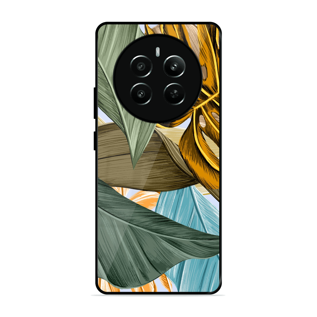 Tempered Glass Coated Metal Back Case for Realme Narzo 70 5G Leaves