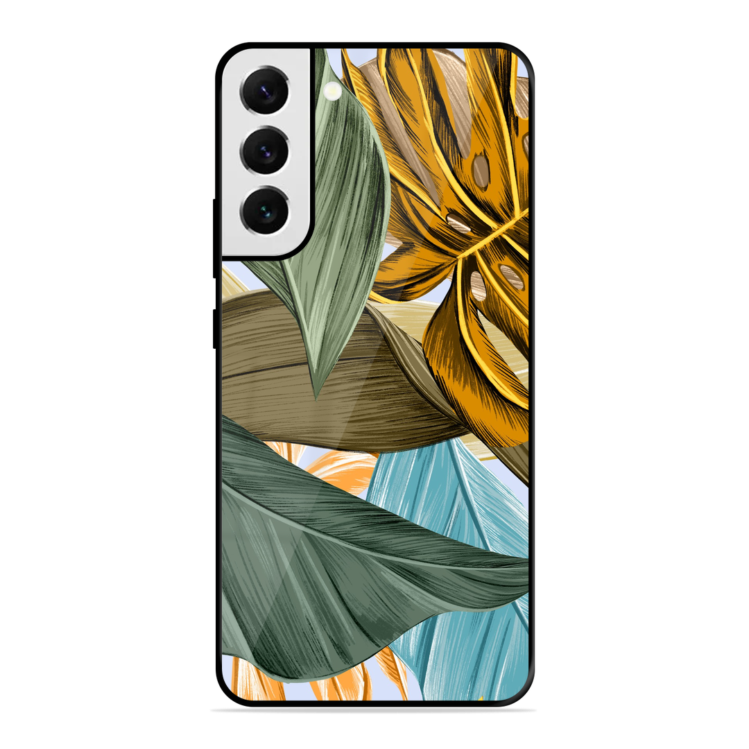 Tempered Glass Coated Metal Back Case for Samsung Galaxy S21 Fe 5G Leaves