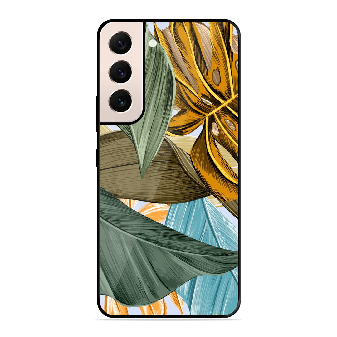 Tempered Glass Coated Metal Back Case for Samsung Galaxy S21 Plus Leaves
