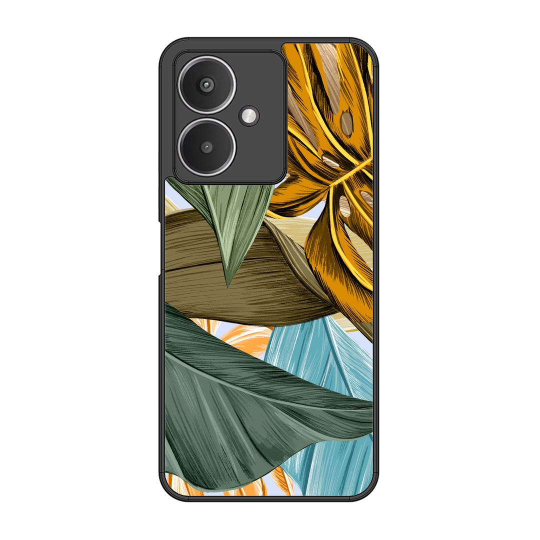Tempered Glass Coated Metal Back Case for Xiaomi Redmi 13C 5G Leaves