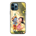 Tempered Glass Coated Metal Back Case for Apple Iphone 12 Pro Little Cute Shree Radha Krishna