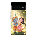 Tempered Glass Coated Metal Back Case for Google Pixel 6 Pro Little Cute Shree Radha Krishna