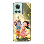 Tempered Glass Coated Metal Back Case for Oneplus 10R 5G Little Cute Shree Radha Krishna