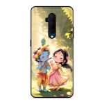 Tempered Glass Coated Metal Back Case for Oneplus 7T Pro Little Cute Shree Radha Krishna