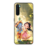 Tempered Glass Coated Metal Back Case for Oneplus Nord Little Cute Shree Radha Krishna