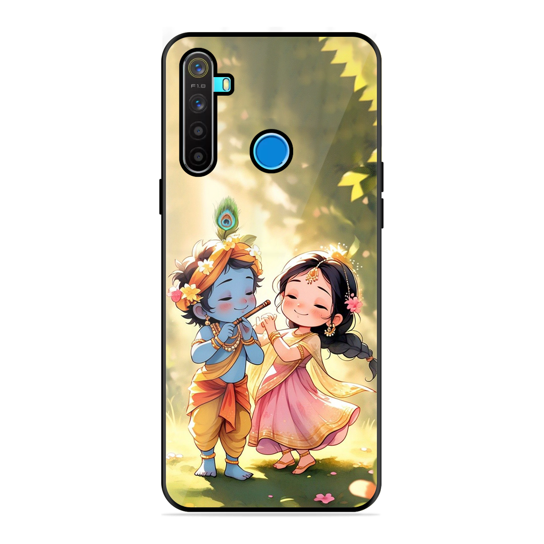 Tempered Glass Coated Metal Back Case for Realme 5 Little Cute Shree Radha Krishna