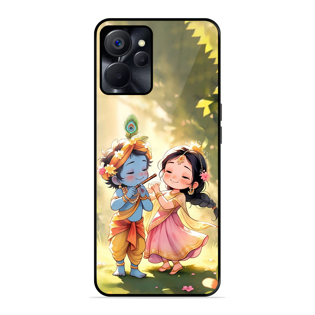 Tempered Glass Coated Metal Back Case for Realme 9I 5G Little Cute Shree Radha Krishna