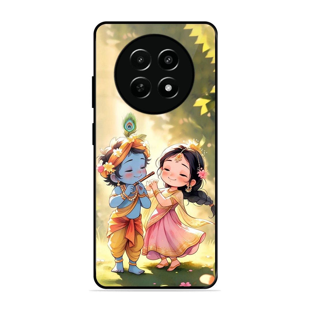 Tempered Glass Coated Metal Back Case for Realme Narzo N65 5G Little Cute Shree Radha Krishna