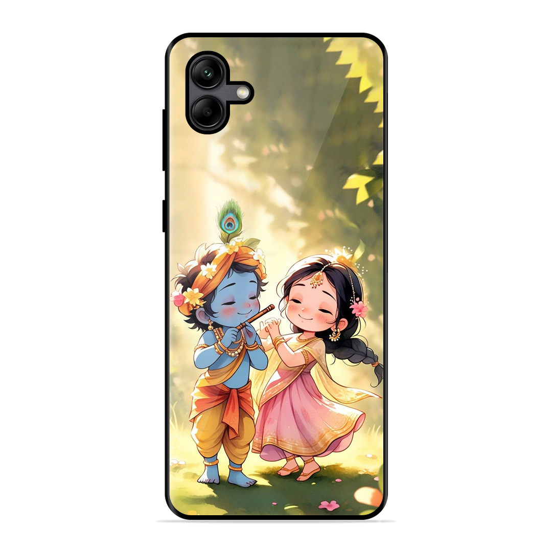 Tempered Glass Coated Metal Back Case for Samsung Galaxy A04 Little Cute Shree Radha Krishna