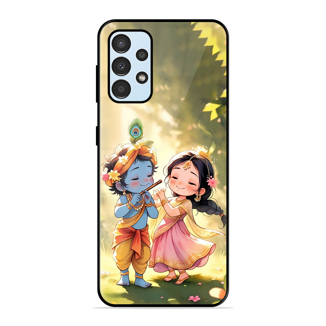 Tempered Glass Coated Metal Back Case for Samsung Galaxy A72 Little Cute Shree Radha Krishna
