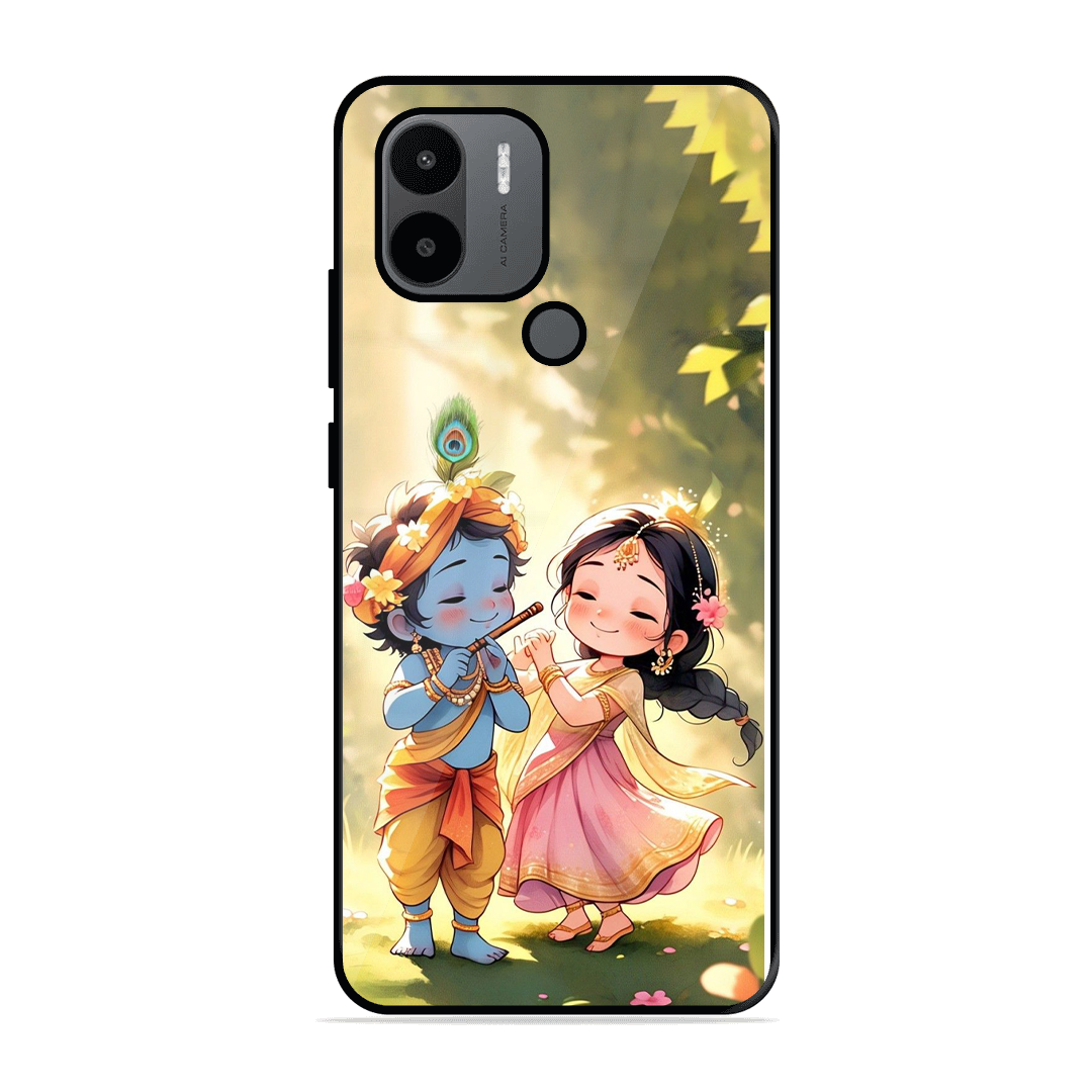 Tempered Glass Coated Metal Back Case for Xiaomi Redmi A2 Plus Little Cute Shree Radha Krishna