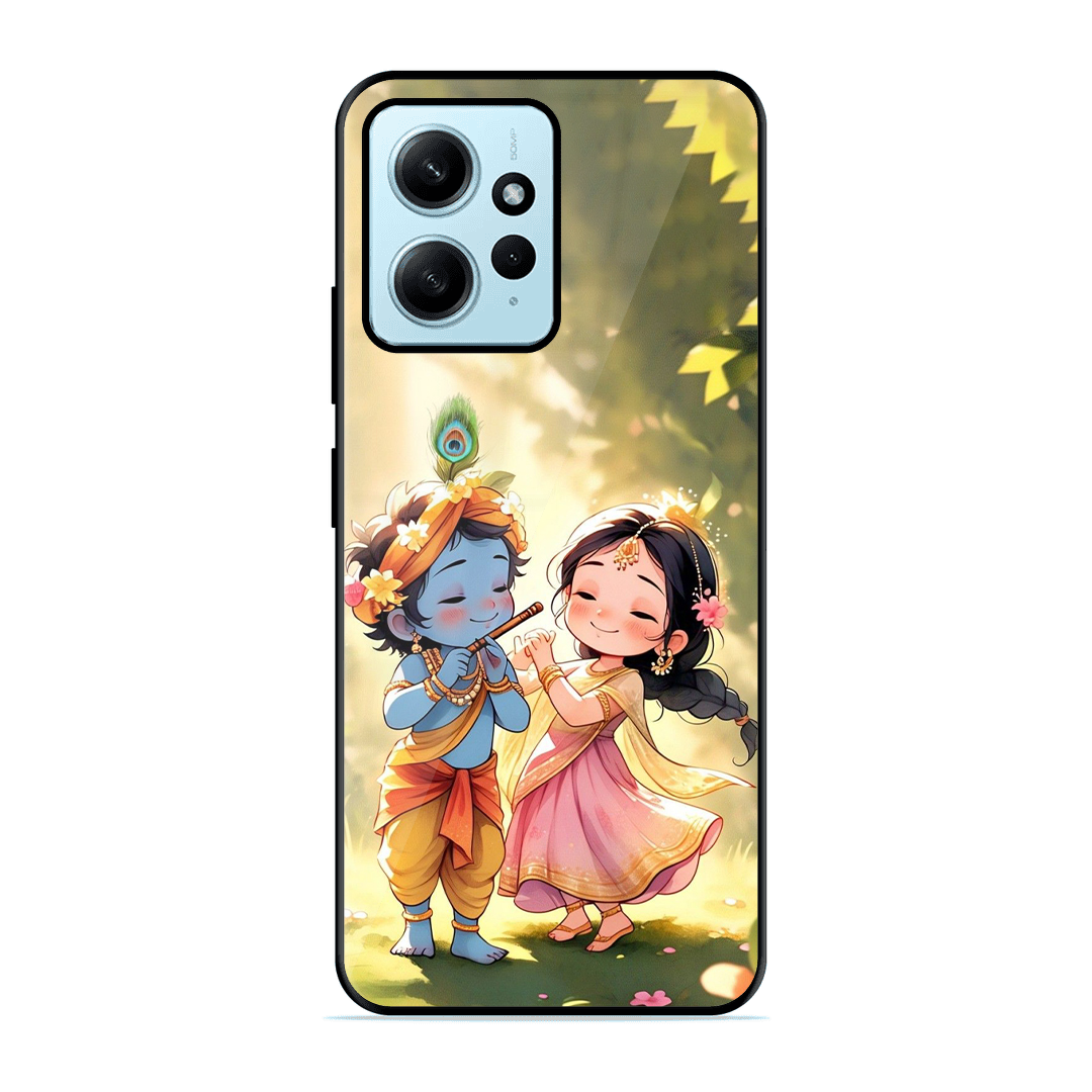 Introducing the ultimate fusion of bold design and rugged protection: the Tempered Glass Coated Metal Back Case for {brand} Xiaomi Redmi Note 12 4G Little Cute Shree Radha Krishna. Thoughtfully crafted for those who demand both high performance and high style, this premium case redefines mobile protection with a stunning, custom twist.
