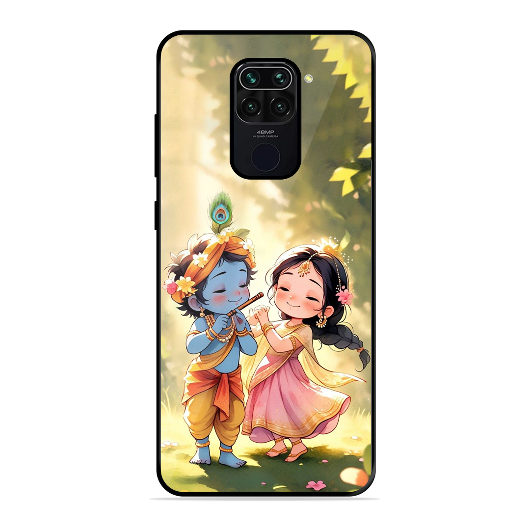 Tempered Glass Coated Metal Back Case for Xiaomi Redmi Note 9 Little Cute Shree Radha Krishna