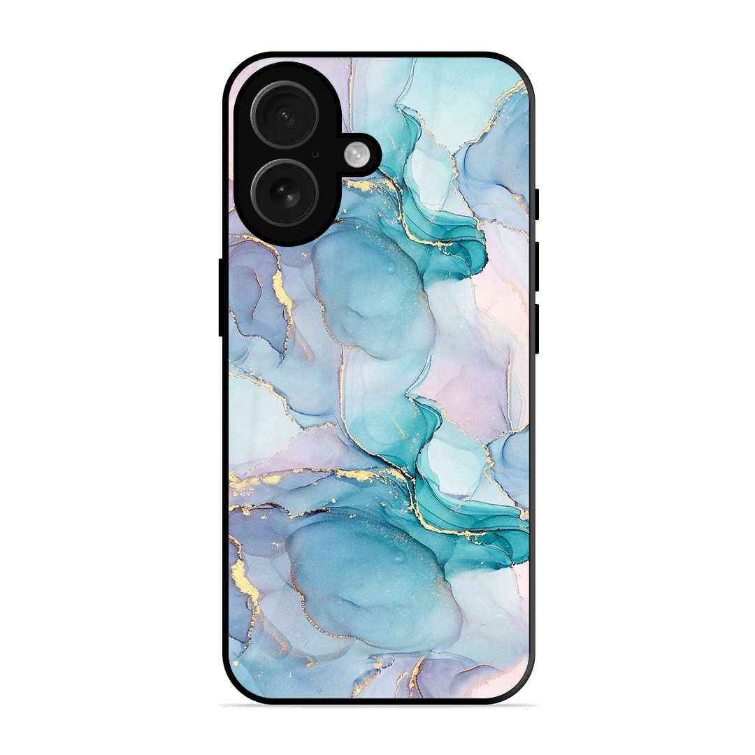 Tempered Glass Coated Metal Back Case for Apple Iphone 16 Plus Marble Texture