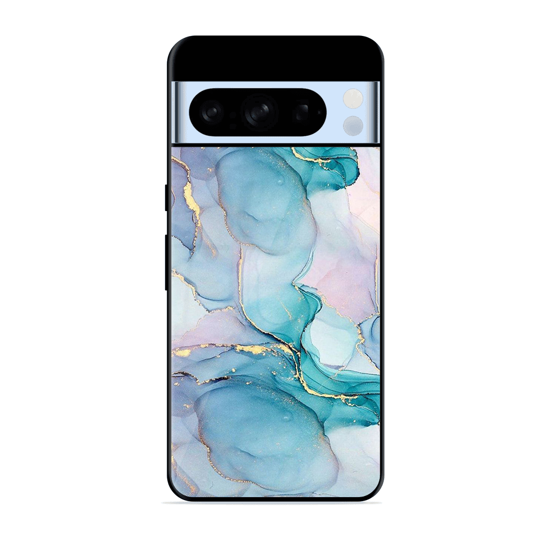 Tempered Glass Coated Metal Back Case for Google Pixel 8 Pro Marble Texture
