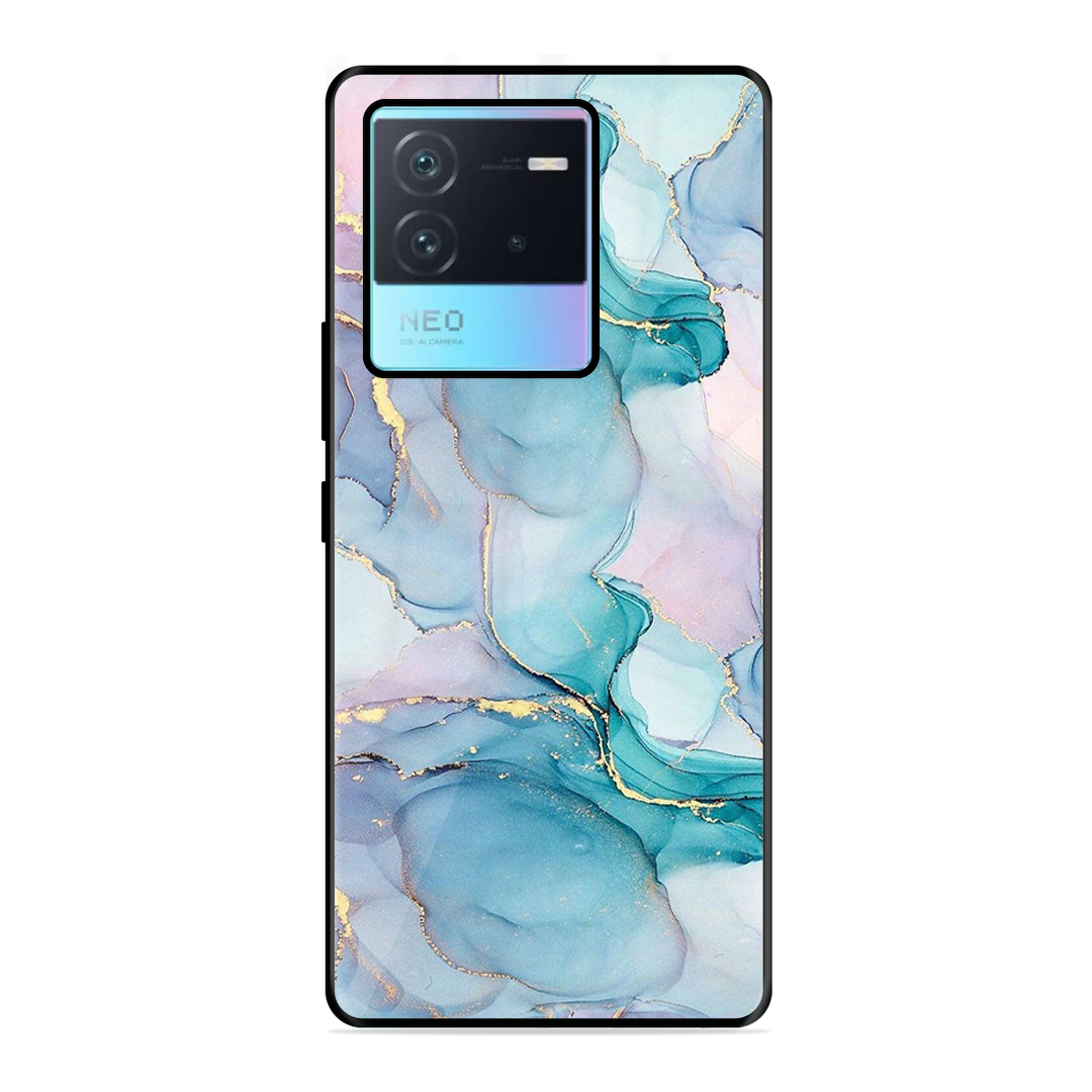 Tempered Glass Coated Metal Back Case for Iqoo Neo 6 5G Marble Texture
