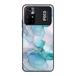 Tempered Glass Coated Metal Back Case for Poco M4 Pro 5G Marble Texture