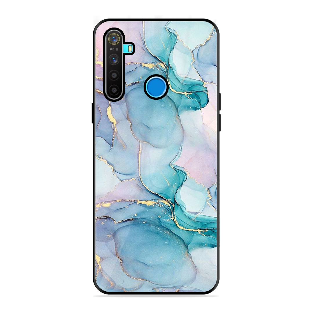 Tempered Glass Coated Metal Back Case for Realme 5 Marble Texture