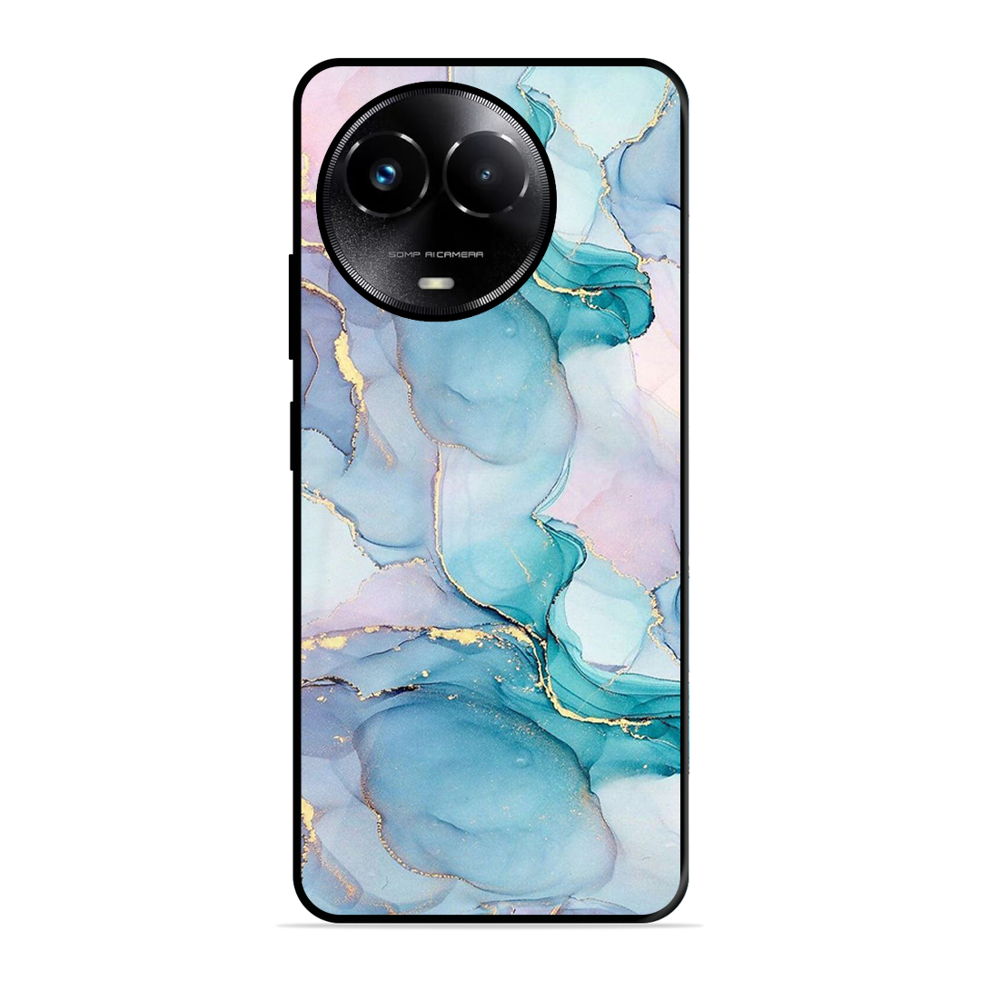 Tempered Glass Coated Metal Back Case for Realme C67 5G Marble Texture