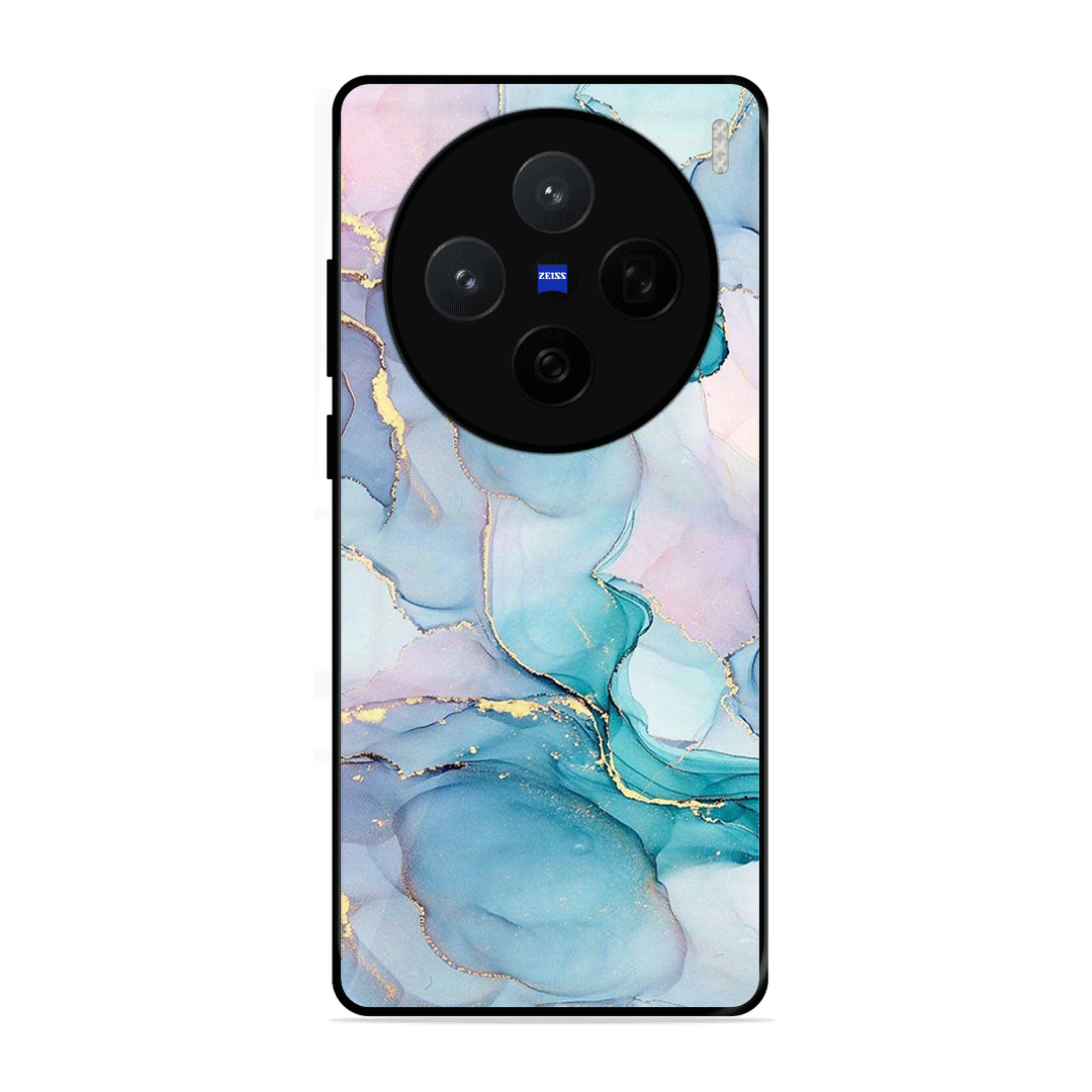 Tempered Glass Coated Metal Back Case for Vivo X200 5G Marble Texture
