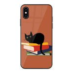 Tempered Glass Coated Metal Back Case for Apple Iphone Xs Max Meow Book