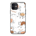 Tempered Glass Coated Metal Back Case for Apple Iphone 12 Meow Life