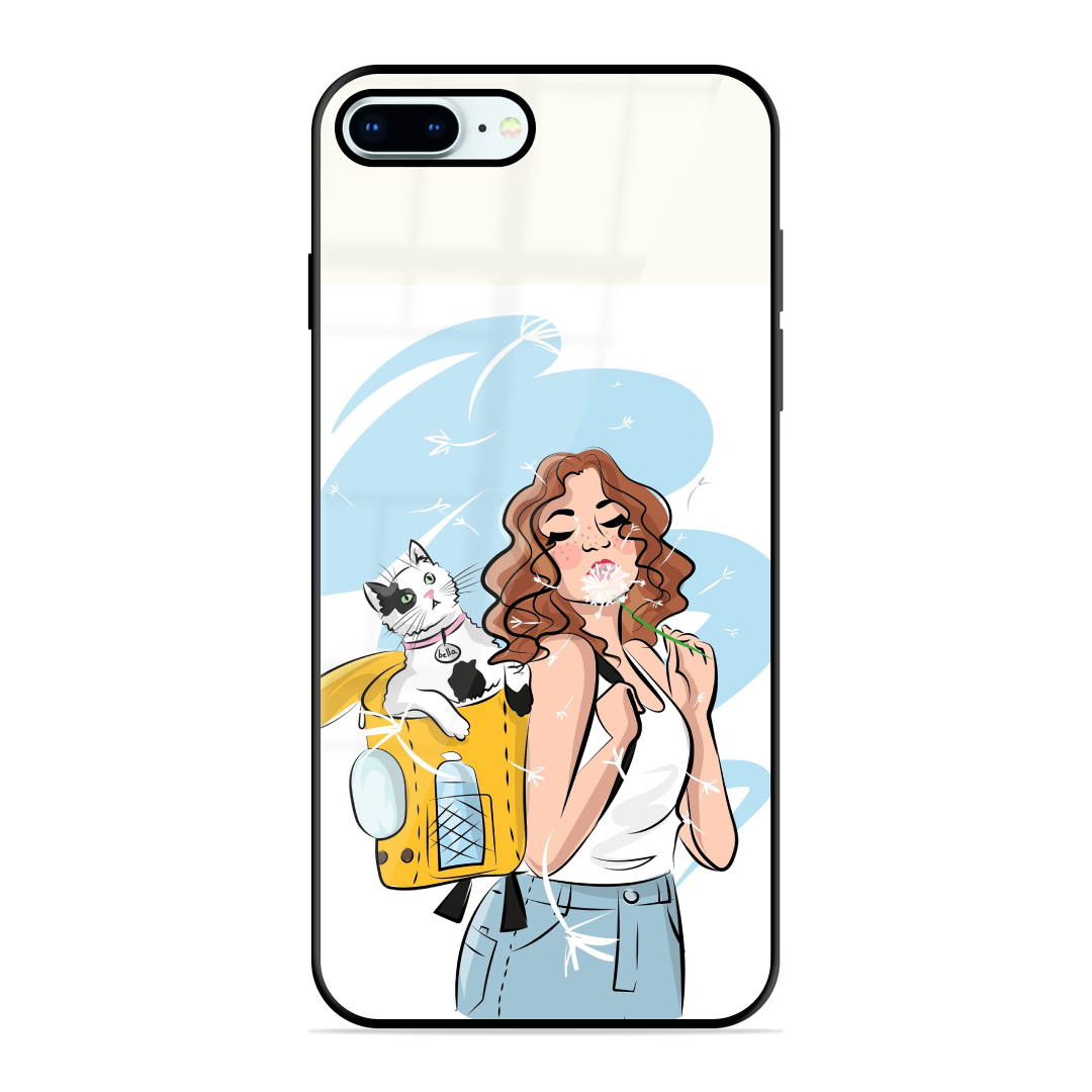 Tempered Glass Coated Metal Back Case for Apple Iphone 8 Plus Miss Charm